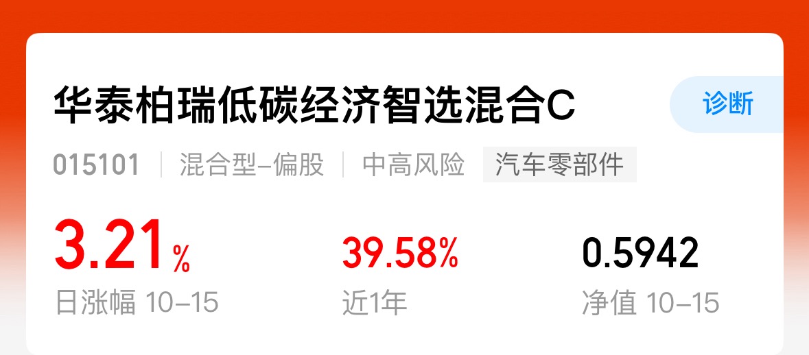 我持有的$华泰柏瑞低碳经济智选混合C$ 今天表现不俗,上涨3.21%。产品瞄准机器人等趋势,同时注重回撤,让我敢于长期持有。