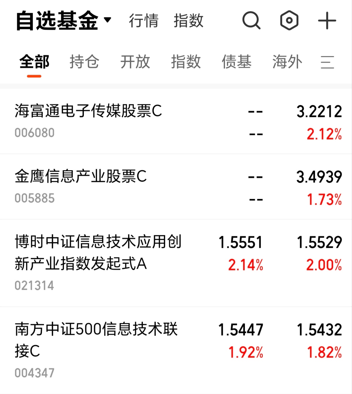 $博时中证信息技术应用创新产业指数发起式A(OTCFUND|021314)$涨2%