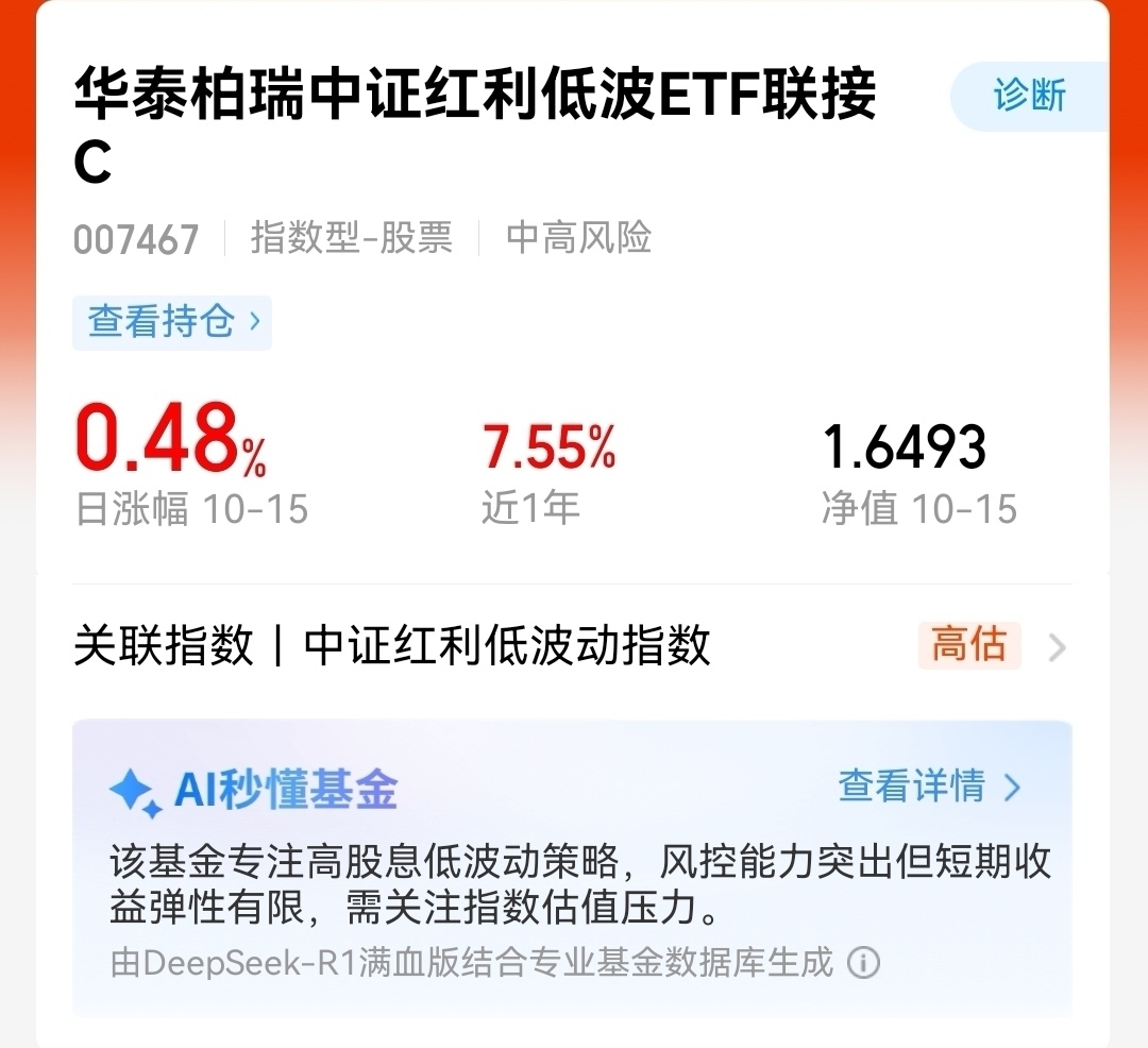 果然,红利资产的防御性不是吹的。我的华泰中证红利今天又涨了0.48%,这波五连涨让人安心。继续看好其后续表现。