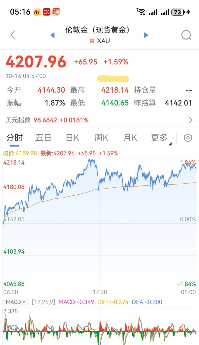 在今天早上,观察现货黄金在昨天收盘是涨+1.59%。