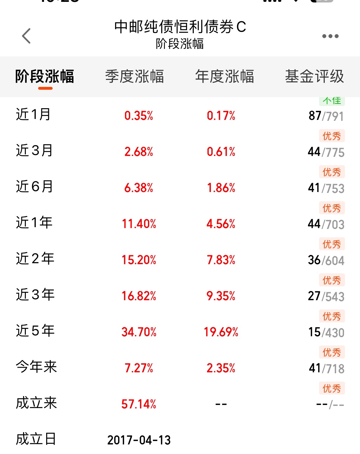 股市近期也是有点大的波动,不过还好开始慢慢反弹,混债$中邮纯债恒利债券C$也在回