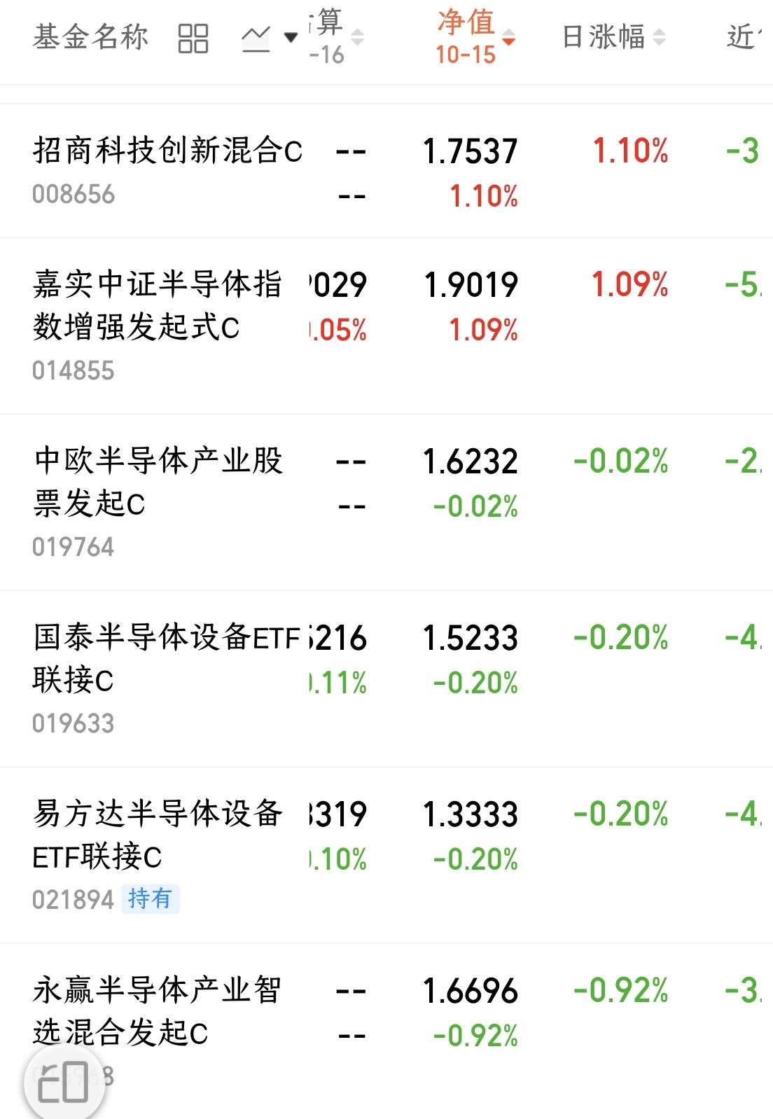 $嘉实中证半导体指数增强发起式C(OTCFUND|014855)$昨日上涨1.09%