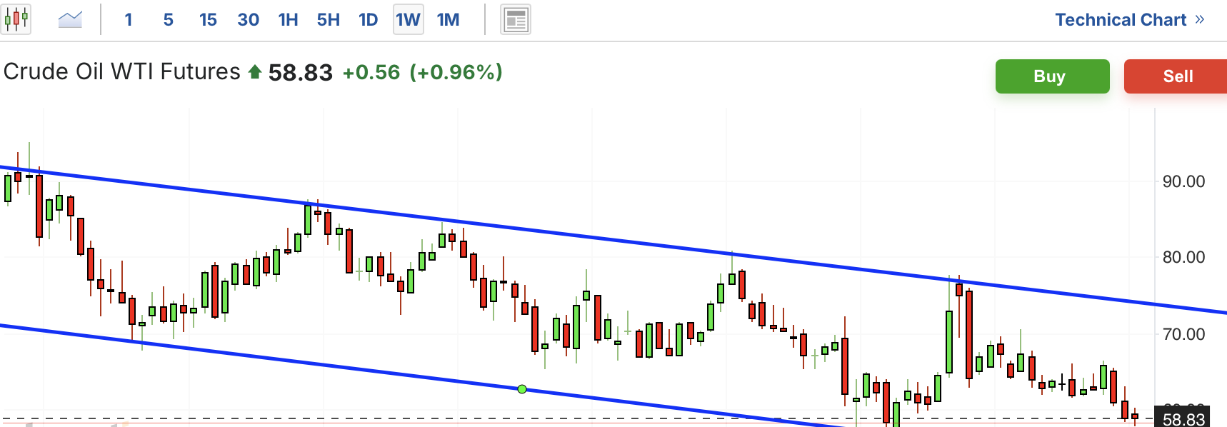 原油近期进入下行通道,前几日跌破前低支撑,趋势下行,逐渐滑向通道支撑位。油气近期上行受阻,在中间位置宽幅震荡,这两日在通道支撑位止跌反弹。