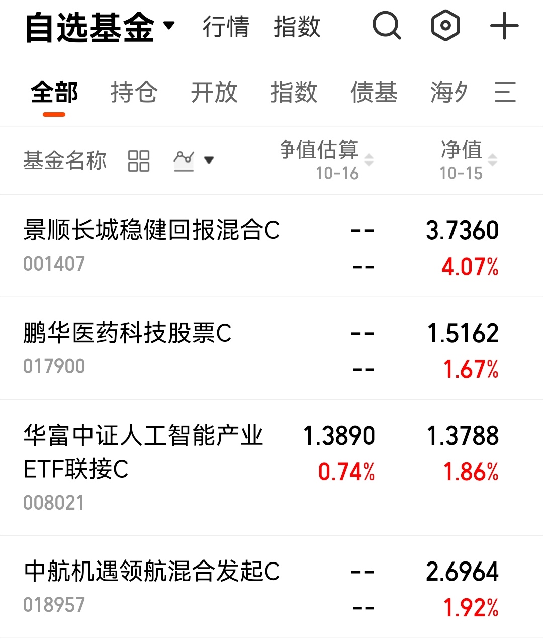 今日A股市场稳定上涨,市场恐慌情绪已经过去,其中科技继续带来领涨行情,而从近期涨幅来看,我发现$景顺长城稳健回报混合C(OTCFUND|001407)$作为一款主动型基金,昨日竟然大涨4.07%,反弹力度非常迅猛,可见基金经理调仓能力之强!