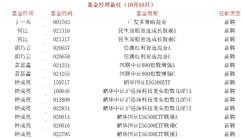 新聘5人,涉及14只基金;离职5人,涉及15只基金。