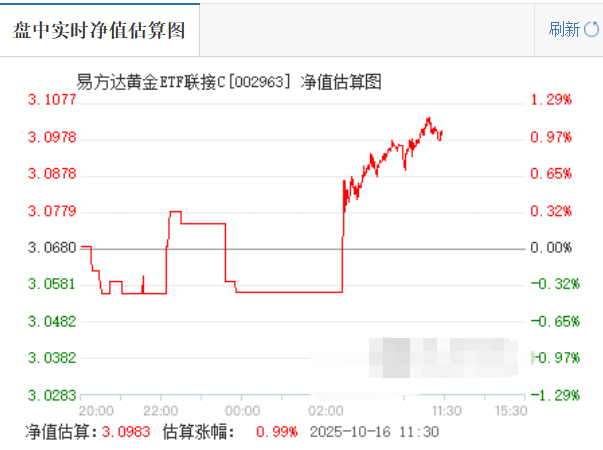 家人们今天黄金赛道也太香了吧~目前市场普遍预期美联储10月底会议再次降息,越来越多的资产开始配置黄金资产,进入技术性牛市通道,而且我感觉这里短期趋势有望继续延续,我看$易方达黄金ETF联接C(OTCFUND|002963)$目前估值收涨0.99%,这里已经3连涨近1周收涨9.73%,近1月收涨15.40%近期表现还是很不错的哟~期待后面继续能有个好的回报.