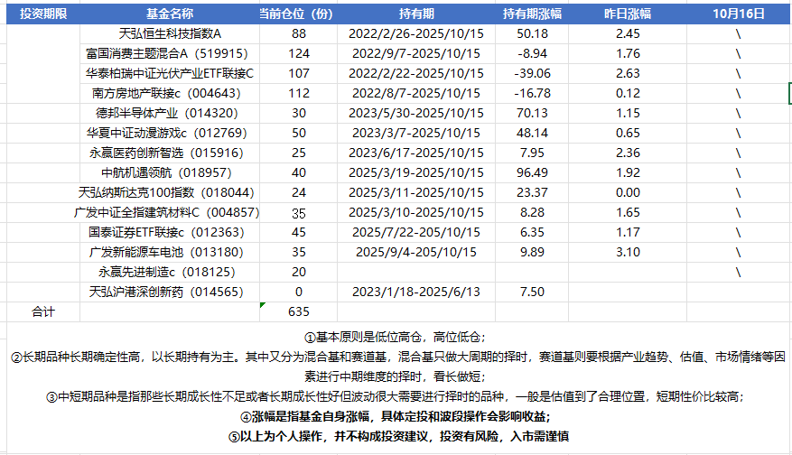 周一、周二连续低吸后,周三、周四连续两天反弹,下周是四中,然后是十五五规划,市场应该会相对稳定,当然外部环境还有不确定性,贸易问题没有解决。这里我们还是做好低吸高抛,之前我把电池换到了广发新能源电池,但实际上更好的一直是汇添富中证电池主题