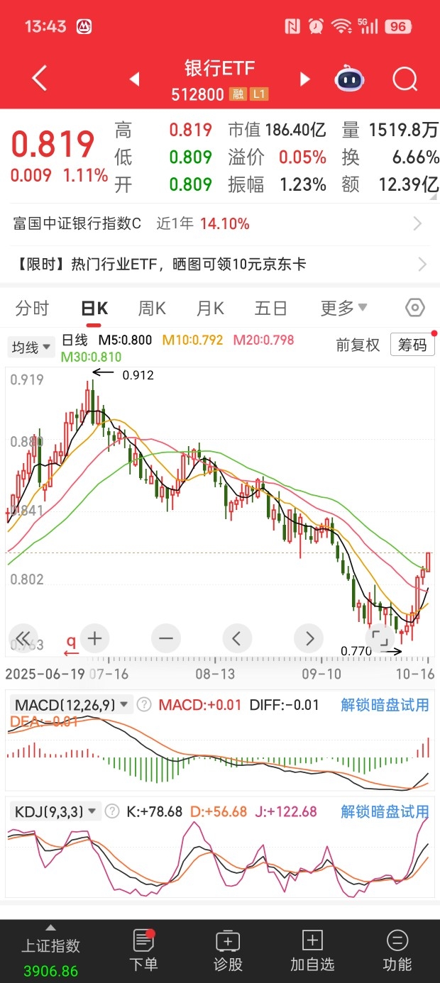手里的银行很想清掉,有效放量突破30日线,感觉还有戏?#指数操盘手集结令# #3900点得而复失!A股风格要改了?# #10月基金投资策略#