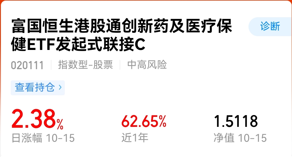 兄弟们,麦爸刚看完盘,必须说道说道!咱之前加仓的$富国恒生港股通创新药及医疗保健ETF发起式联接C(OTCFUND|020111)$,今天直接最高飙了3%+,这口肉吃得真舒服!