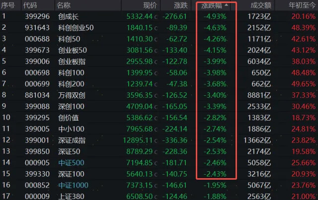 跌幅前三的:通信(-4.92%)、电子(-4.47%)、有色金属(-3.66%);