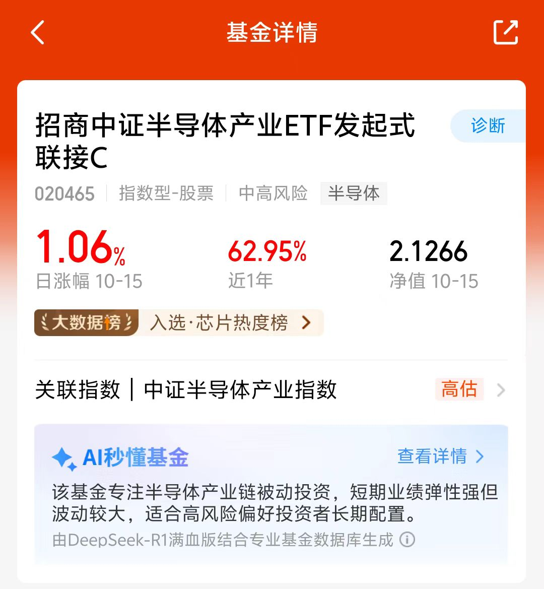 半导体板块近期利好消息不断:中国半导体设备目前正以“集团式突围”的方式打开市场份额、2025年上半年全球半导体市场规模达3432.5亿美元,同比增长19.4%,长期来看,半导体设备国产化替代成为大势所趋,长期看好这个方向,$招商中证半导体产业ETF发起式联接C(OTCFUND|020465)$近一月涨了13.02%,近三个月涨了46.96%,我准备分批加仓了!