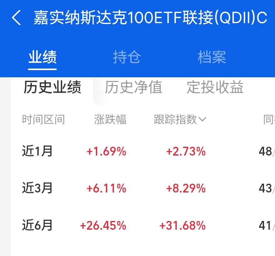 $嘉实纳斯达克100ETF发起联接(QDII)C人民币$ 近半年涨了26.45%,长期持有的体验感拉满。