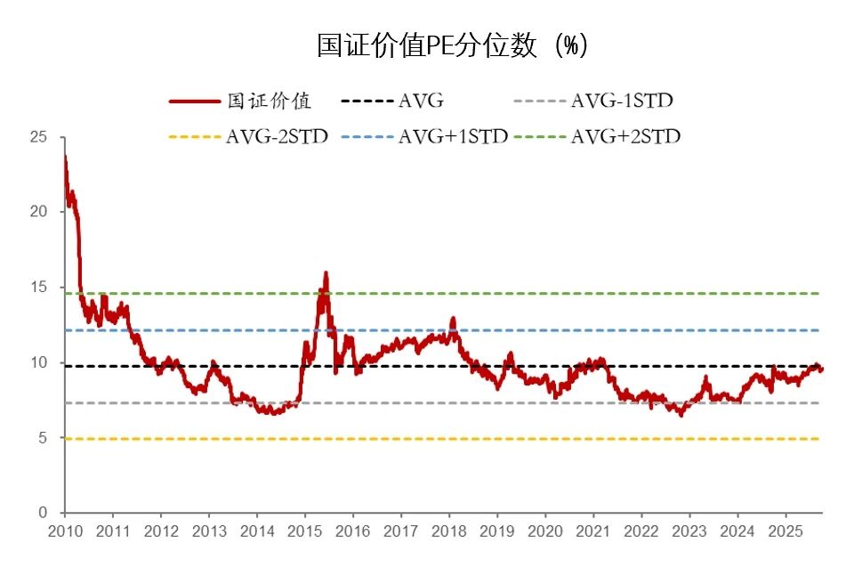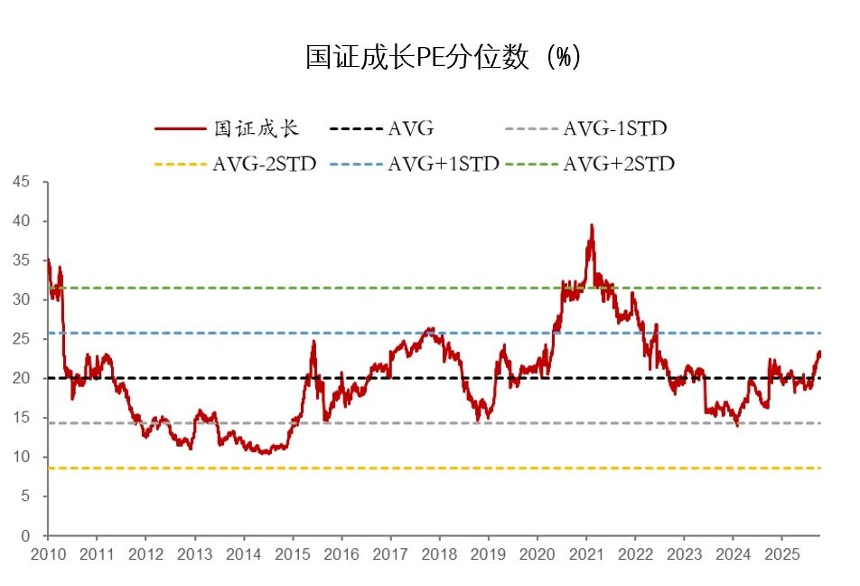 当前,国证成长、国证价值分别处于2010年以来74%、58%分位水平。今年二季度以来国证成长估值快速扩张,已接近“均值+1倍标准差”水平,而国证价值估值仍处于均值以下。