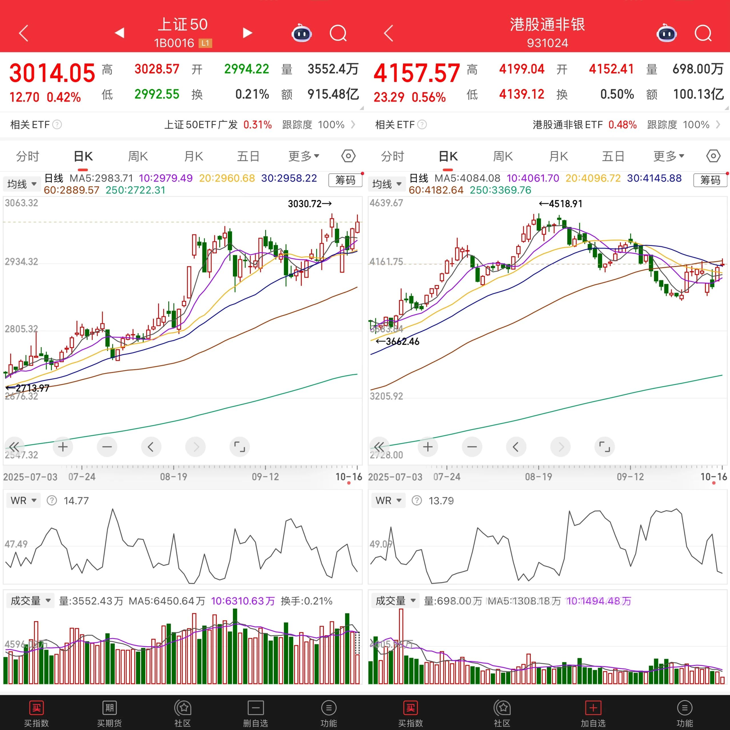 上证50相关ETF和港股非银相关ETF,考虑择机在打野账户里面配置一些,作为防守资产。