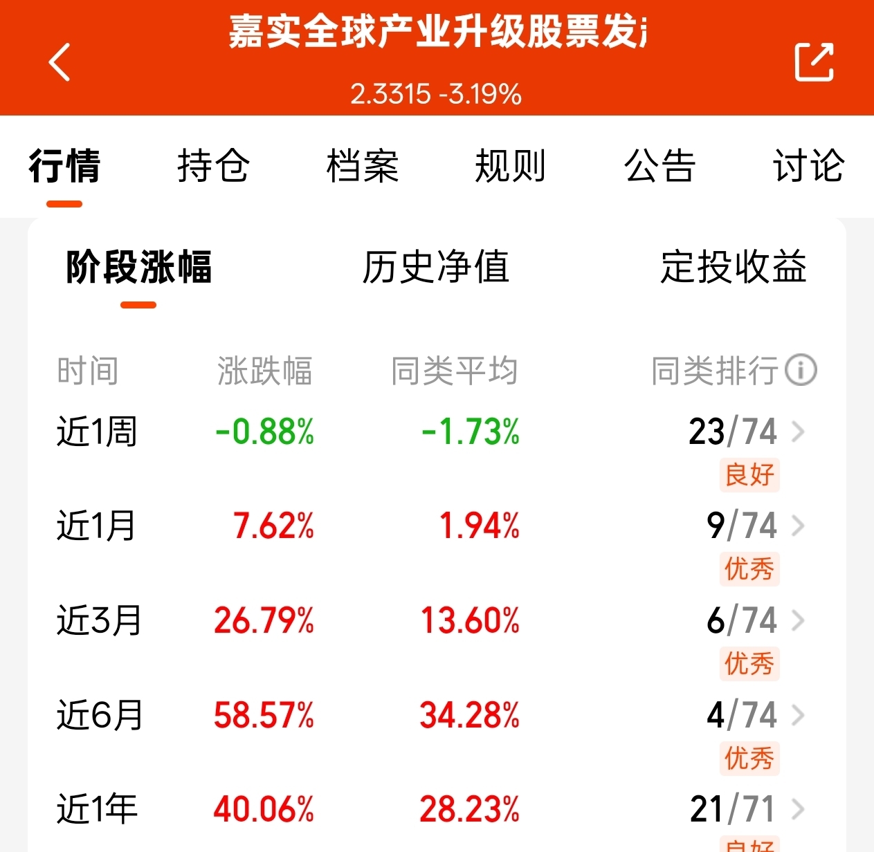 市场震荡时,配置全球优质资产可分散风险。嘉实全球产业升级股票发起式(QDII)C就很合适,它以全球化产业升级为主题,投资全球产业链重构中的技术领先企业,涵盖半导体、新能源、高端制造等领域,近1年收益表现突出,能在震荡市场中为投资者提供参与全球优质资产成长的温和途径。