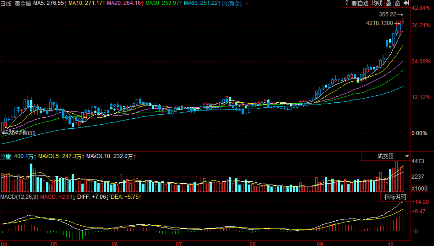 板块方面,黄金再度冲关,强势站上4200。自从突破平台后,一骑绝尘,强的没朋友,看一组数据,感受下黄金的魅力。