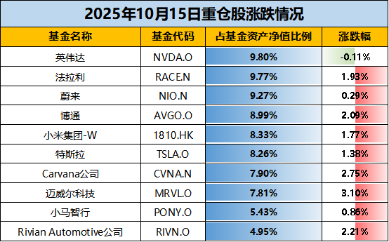 重仓股涨跌情况不代表基金业绩表现,请以每日更新的实际基金净值为准。