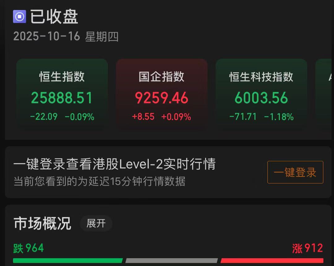 恒生指数下跌0.09%,国企指数上涨0.09%,恒生科技指数下跌1.18%。912只个股上涨,964只个股下跌。南向资金,净买入158.22亿港元。