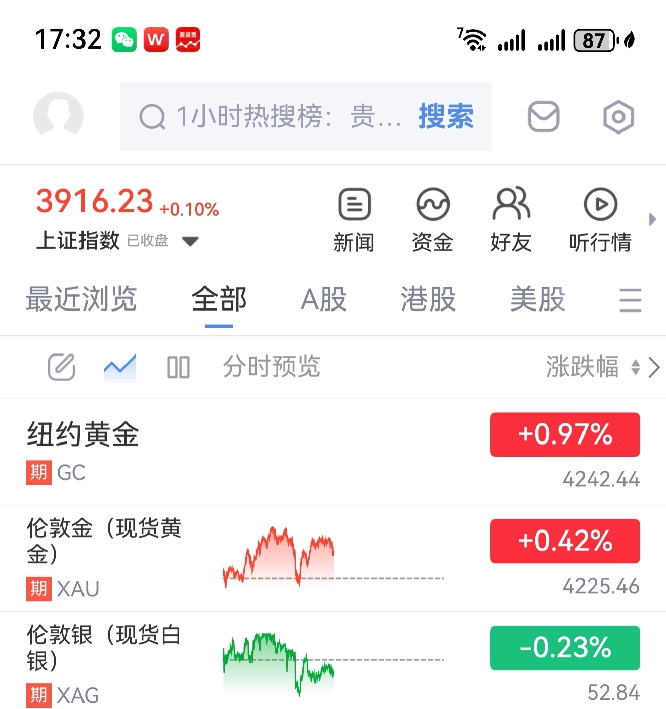 在今天下午17点半之后,观察现货黄金是涨+0.42%