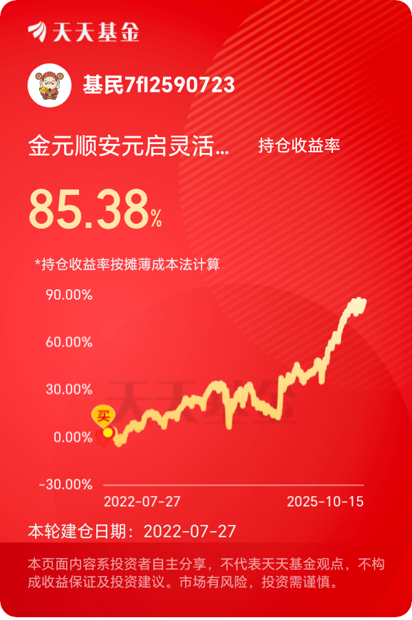 #晒收益# $金元顺安元启灵活配置混合$