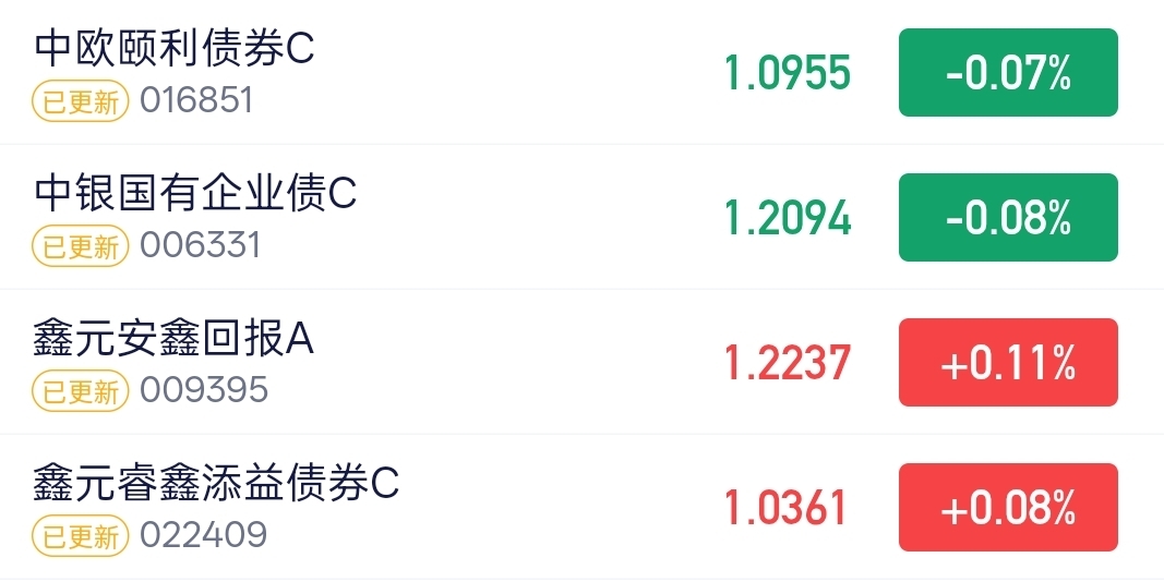 债市今天挺给力,利率债普遍上涨,信用债表现稳健,不少混合债基都有不错收益,今天心情好,明天继续加油!