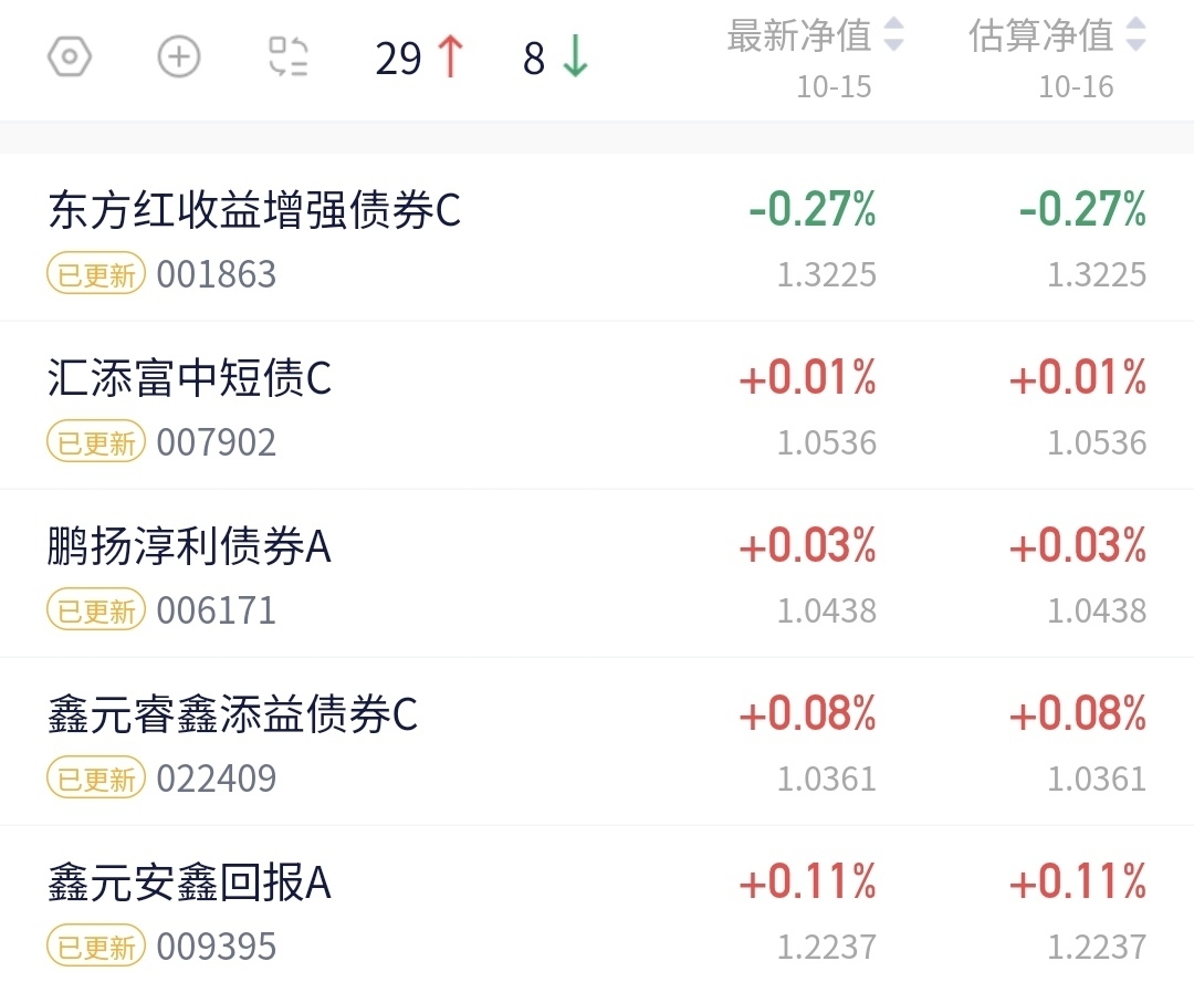 收蛋了,今儿个债市行情挺喜人,开盘低开后一路走高,好多债基今晚都能有好收益,最新