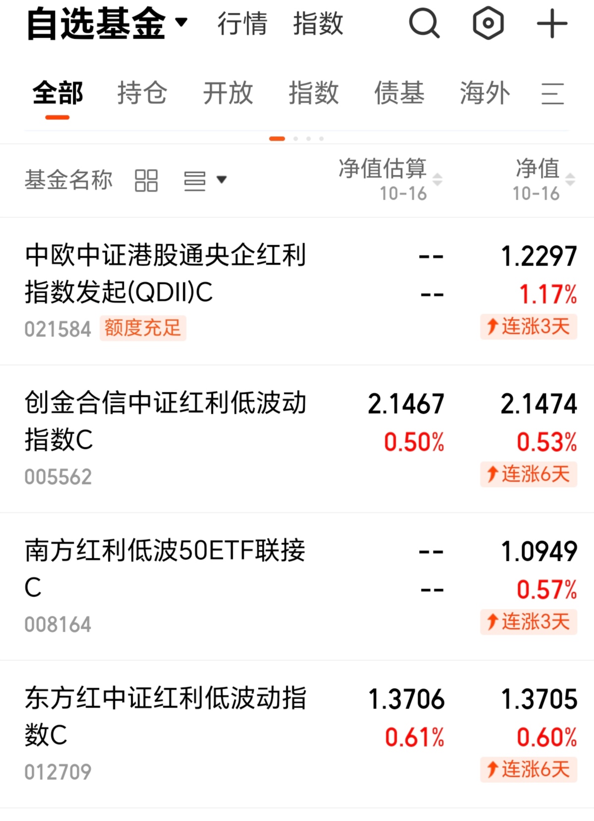 今日A股三大指数涨跌互现,个股更是跌多涨少,这种行情之下,港股红利板块再次逆势上涨,可见其防守能力十足,同时还是大资金的避险首选,来看今晚净值更新情况:$中欧中证港股通央企红利指数发起(QDII)C(OTCFUND|021584)$涨1.17%