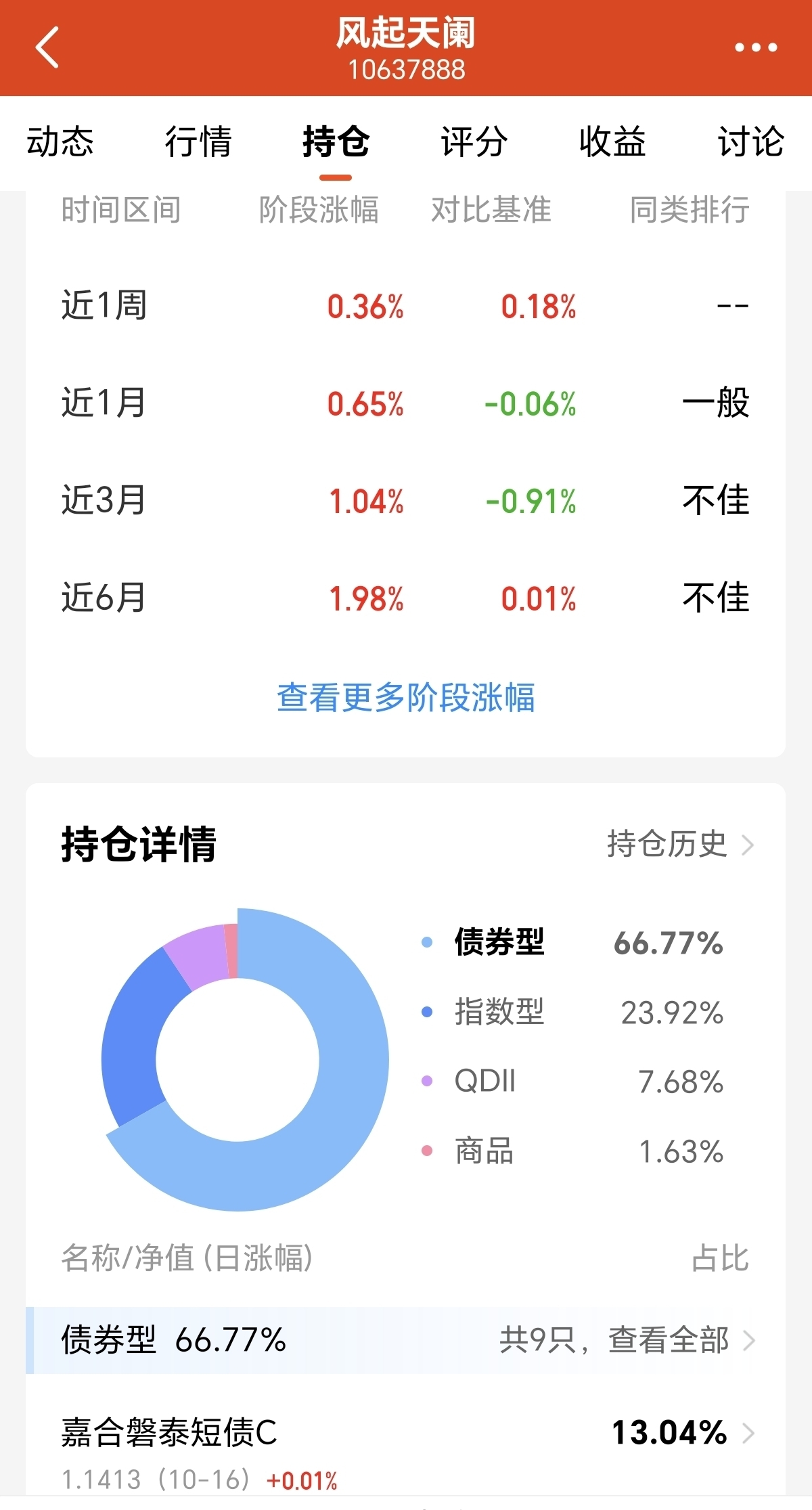 昨天有人在问实盘在哪里看,现在统一回复下,文中所说的组合是天天基金中的债基组合-风起天阑。目前组合净值已更新,今日上涨0.09%,上涨的因素仍然来自于黄金、白银。从夜盘数据来看,伦敦金已经突破4250美元,说不定本周就会突破4300美元,伦敦银同步大涨,目前接近54美元。另外,银行ETF也开始爆发,今天上涨1.48%,接下来,如果A股上涨乏力,预计得靠银行来托底了,今天盘中买入一笔华宝中证银行ETF联接C。