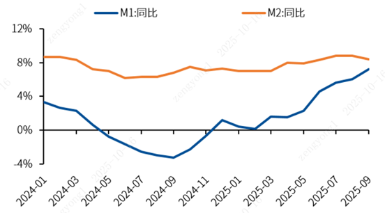 M1-M2剪刀差大幅缩窄。M1同比从上个月的6%大幅上升至7.2%大超预期,M2却从上个月的8.8%下降至8.4%。