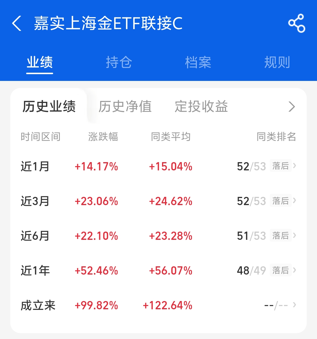 美联储降息预期抬升,黄金再次突破新高,在了解黄金配置过程中,$嘉实上海金ETF发起联接C$ 给我提供了不错的思路。它直接挂钩上海黄金交易所价格,完全避免了实物保管的麻烦。这样资金安排更灵活,使用起来也很方便。每天关注金价变化时,发现加入黄金元素挺有意思。随着时间的推移,越来越能感受到它对整体资产的平衡作用。用平时熟悉的投资账户就能操作,确实很方便。特别是在市场波动时,黄金往往展现出独特的走势特征。