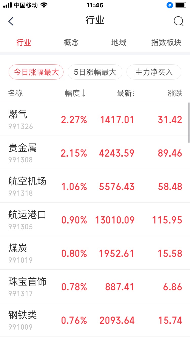 燃气、贵金属、航空机场等板块涨幅靠前,电源设备、风电设备、电网设备等跌幅较大,市场再度走弱。