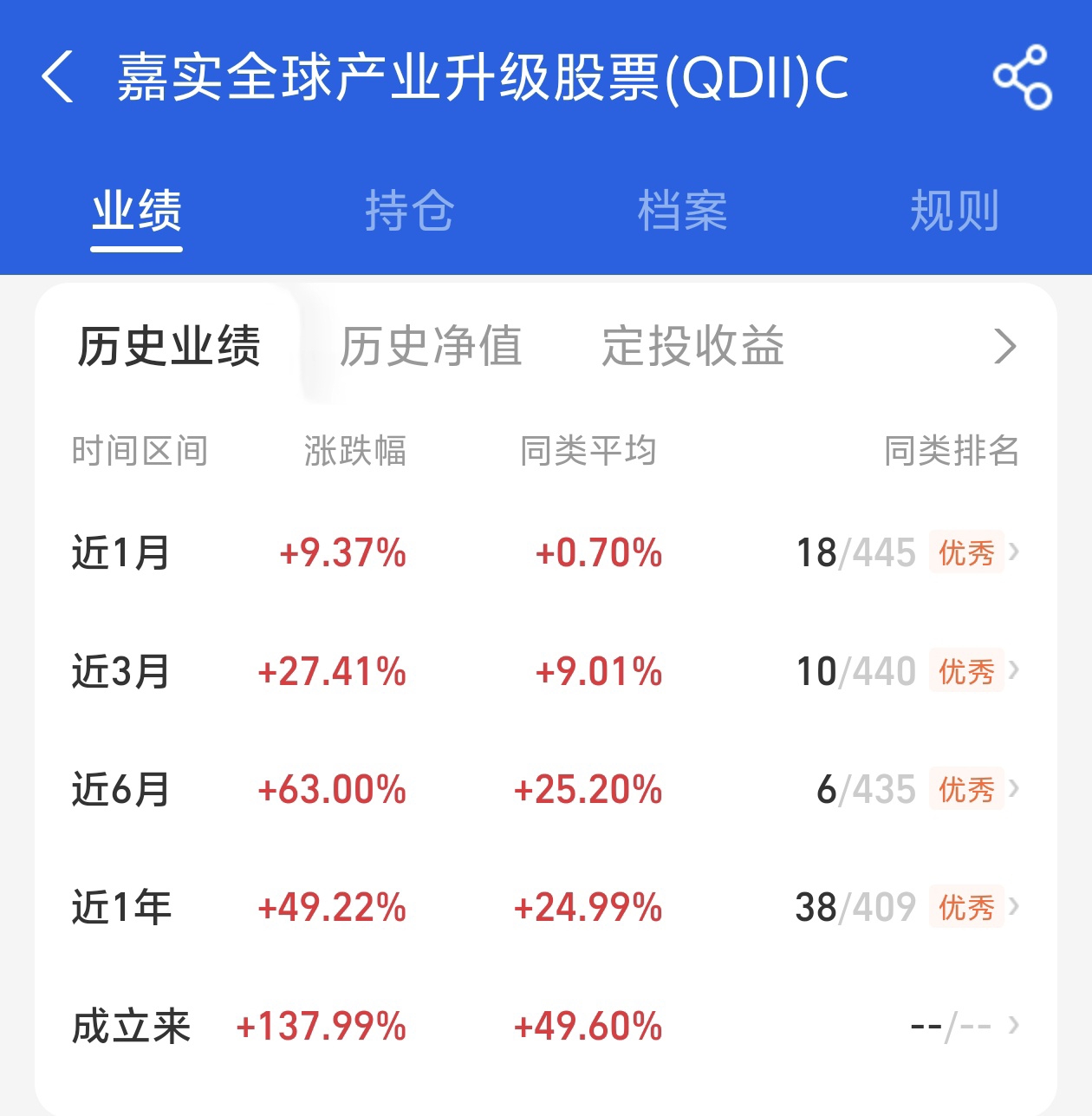 非常的给力呀,宝子们!最近行情也是非常的不错,收益率高,盈利能力强。$嘉实全球产