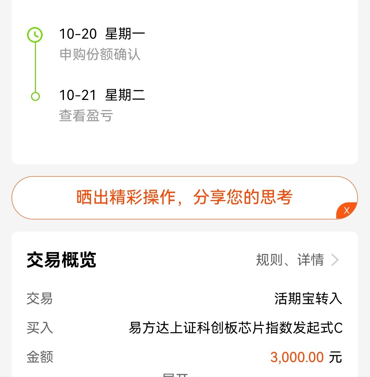 今日大盘低开低走,震荡调整,科技板块跟随下跌,尤其是科创板芯片出现回调。这反而为我提供了入场机会,我决定加仓$易方达上证科创板芯片指数发起式C(OTCFUND|020671)$基金。该基金专注于科创板芯片龙头企业,近一年涨幅达93.65%,各阶段业绩远超同类产品,超额收益突出。期待市场反弹后能收获回报,把握当前的低吸时机,分批布局加仓!