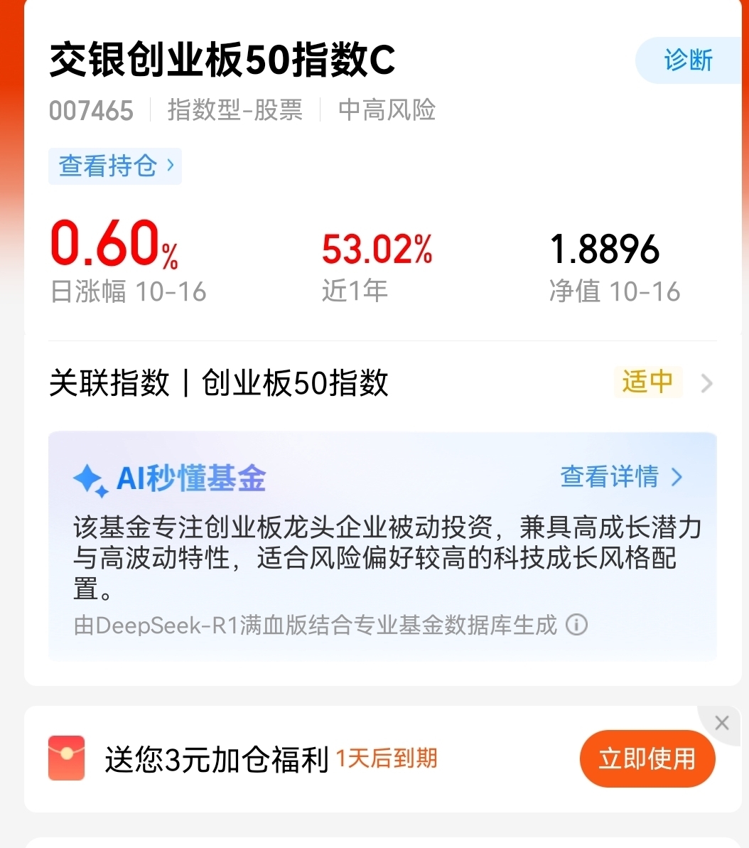 持有这只指数基别慌,分散投成长股,耐心等市场走稳。