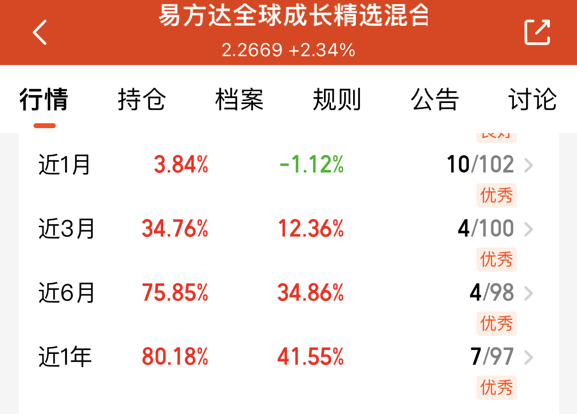 近期美股科技回调、港股估值修复、A股也有所调整,市场节奏切换快。我手里的$易方达全球成长精选混合(QDII)人民币C(OTCFUND|012922)$的基金经理踩点极准:一季报重仓港股吃修复,二季报转美股AI算力,美股大跌又调仓控回撤,在管产品业绩都亮眼。从季报能看出他对全球市场的敏锐度,跟对行情还控风险,继续拿稳筹码,耐心等待反弹行情。