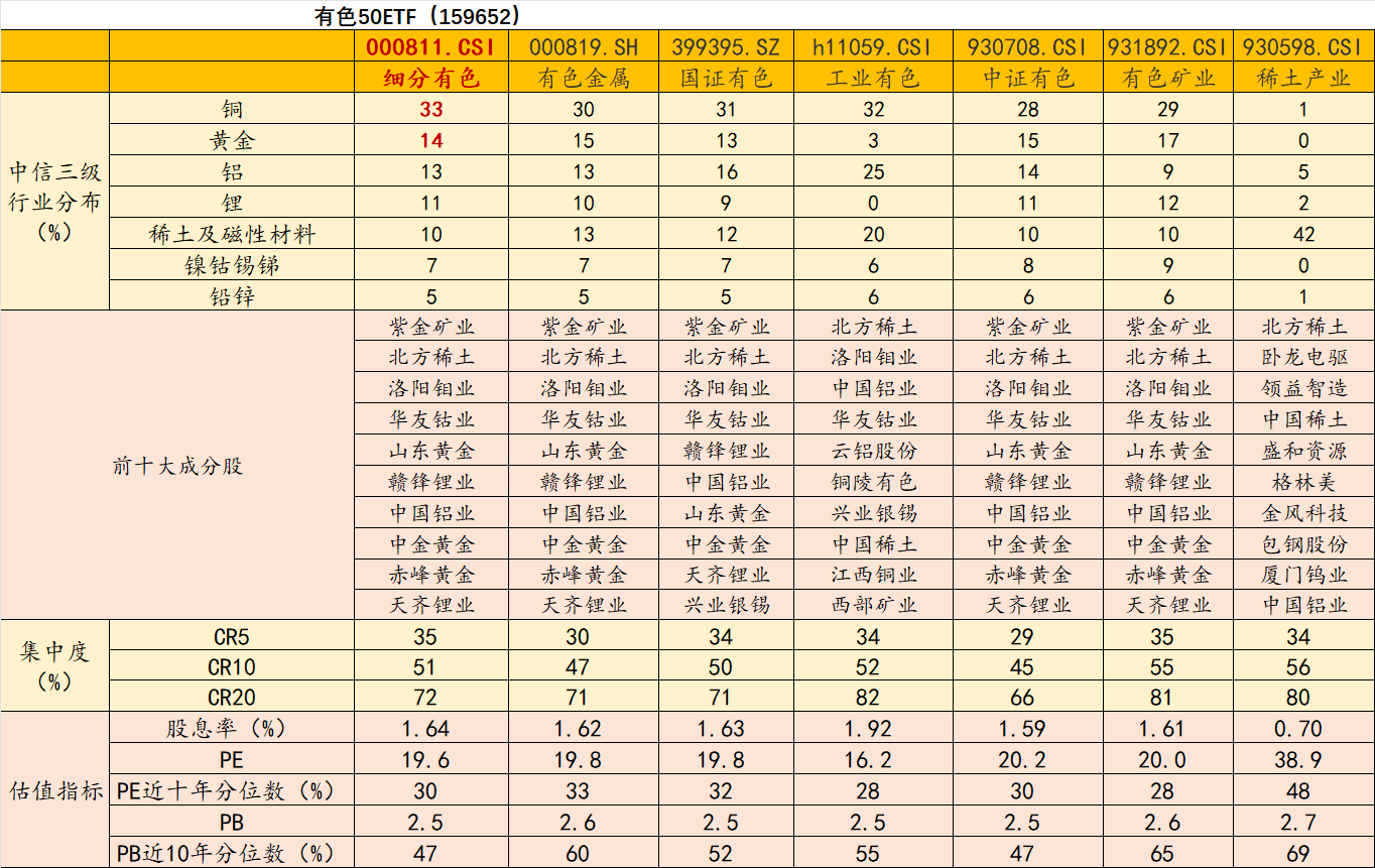 数据显示,中证细分有色金属产业主题指数全面涵盖金、铜、稀土等金属板块,根据中信三级行业分布,其“含铜量”达33%,“金铜含量”领先全市场同类指数!