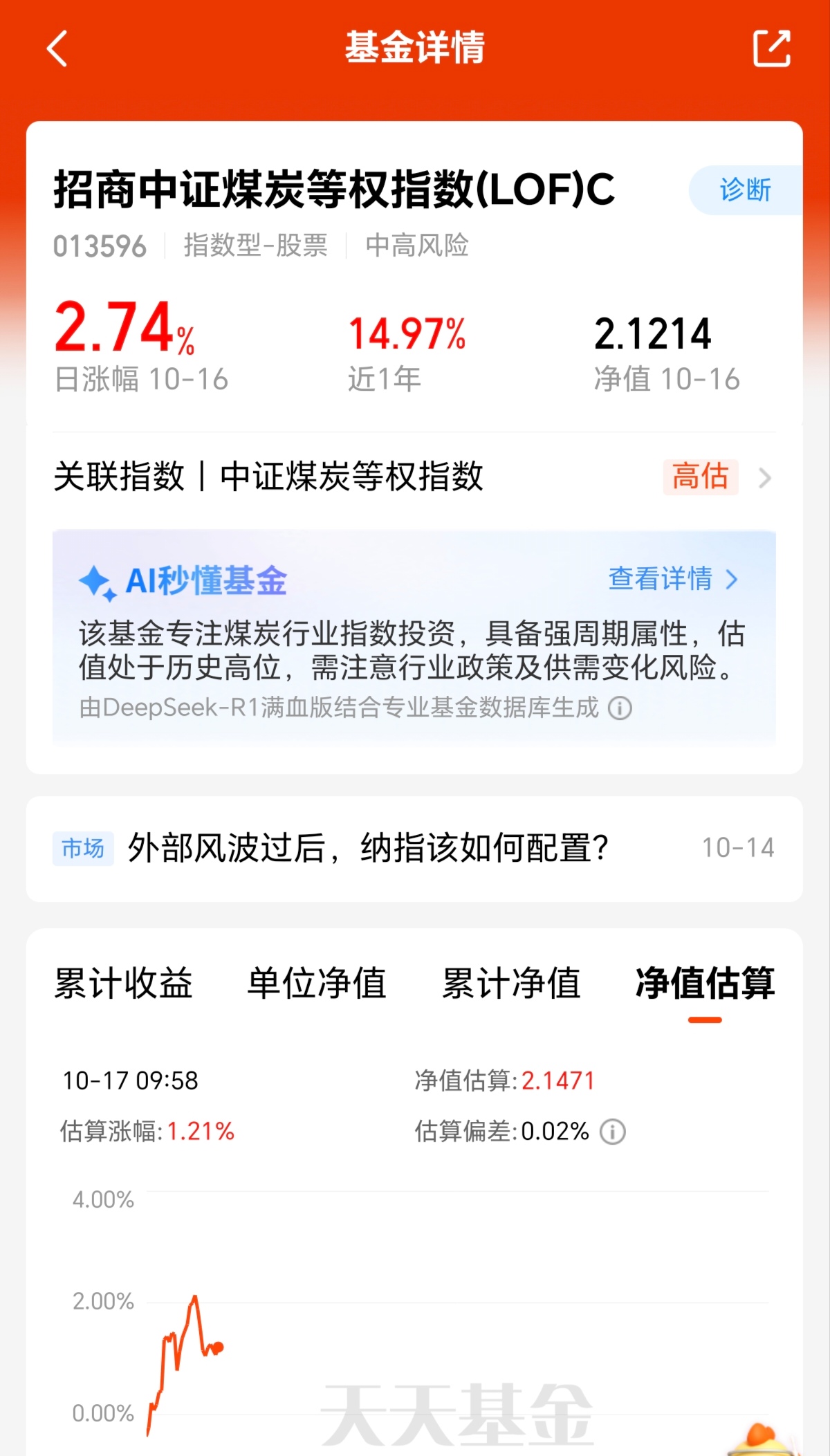 今日大盘迎来集体下跌行情,个股跌幅超3700家,但我发现煤炭板块却能再次逆势上涨!其中$招商中证煤炭等权指数(LOF)C(OTCFUND|013596)$昨日大涨2.74%,目前实时估值稳定上涨,而当下“反内卷”政策也在持续推动行业自律,从而驱动煤炭供应收缩,进一步支撑煤价稳步上涨,我也准备提前布局四季度煤炭行情,相信接下来会有不错收获!