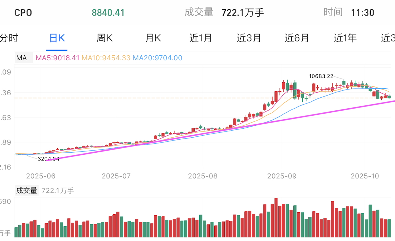 通信(CPO)近期有一波大行情,后高位盘整。最近几日连续大幅下跌,伴随放量,逐渐靠近中长期上涨趋势线,能否守住支撑位决定后市走向。