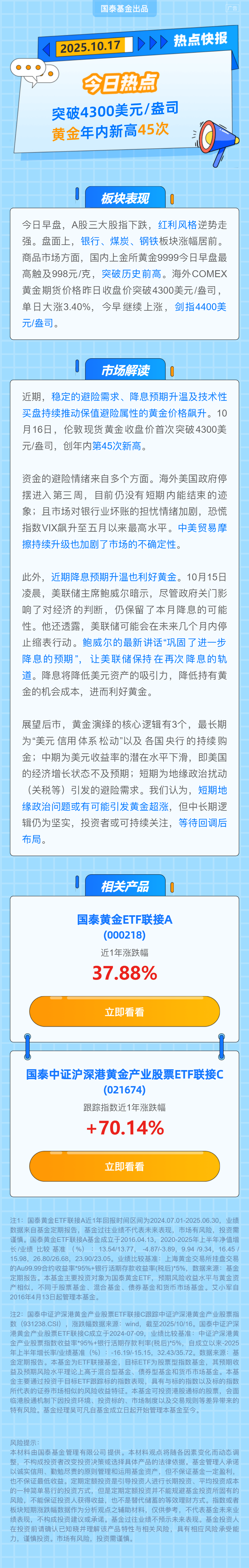 $国泰中证沪深港黄金产业股票ETF发起联接A(OTCFUND|021673)$
