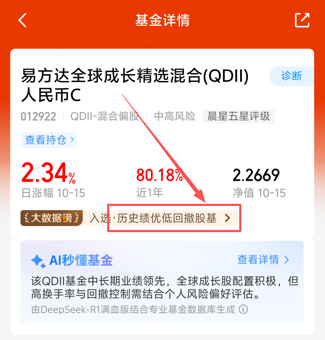 全球市场波动加剧,美股昨夜回调了,截止收盘三大指数小幅下跌,港股和A股今天也灰陶了,易方达全球成长精选混合C持仓可投全球科技板块,美股、A股和港股都能投,把握多个市场科技板块成长机遇,经理调仓能力也很不错,近一年涨了80.18%,还是历史绩优低回撤榜一,回撤也控制的很不错,看好这个方向, 我准备分批加仓!