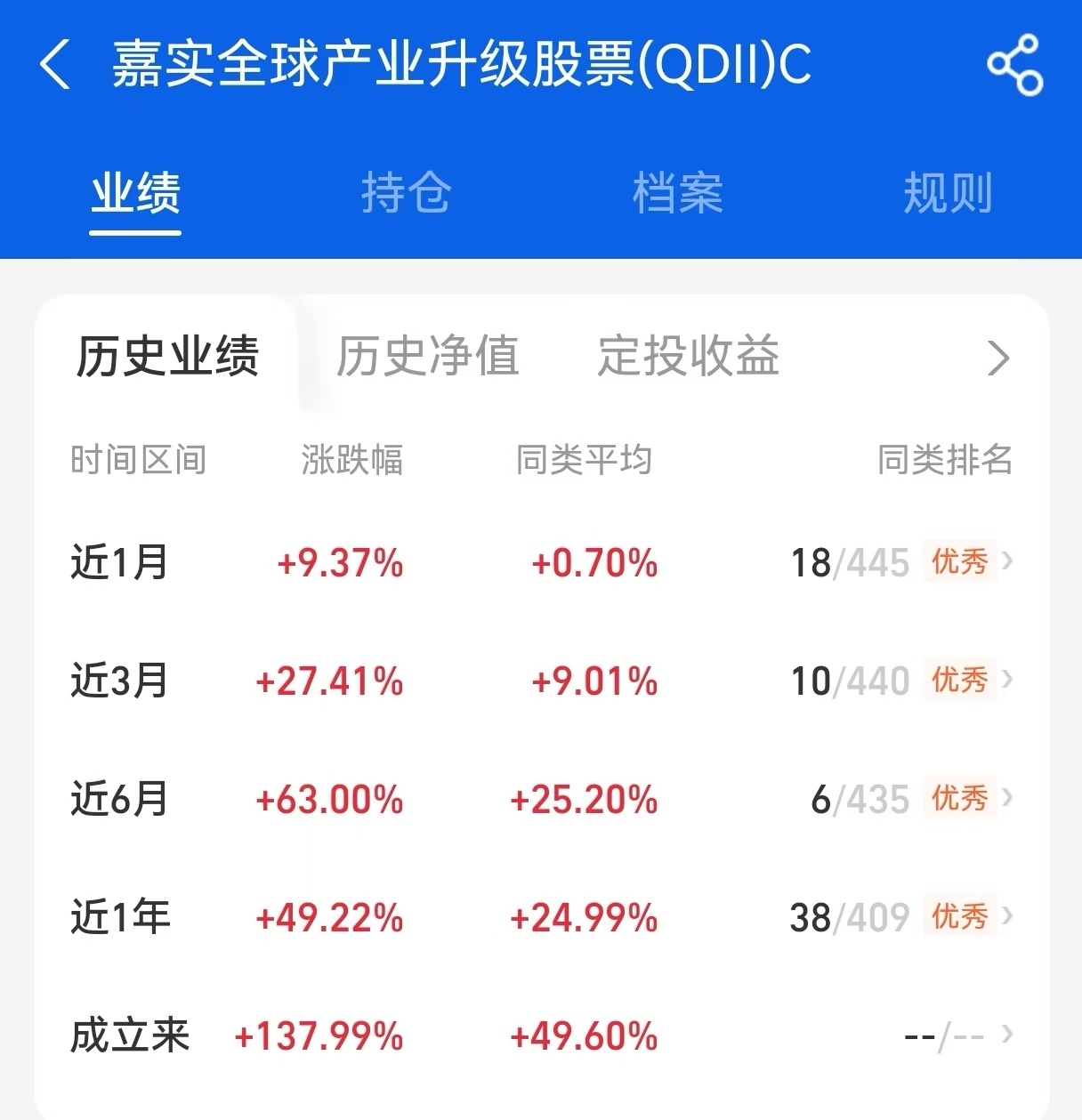 昨天美股虽有小幅调整,但科技板块依旧展现出强劲韧性,多家科技巨头披露的业绩报告亮眼,营收与利润均超市场预期,印证了全球科技产业的高景气度。$嘉实全球产业升级股票(QDII)C$ 其精准锚定全球科技赛道,将重心放在海外龙头股上,近一年收益率49.22%。持仓组合既有像英伟达这样在AI芯片领域占据绝对主导地位的全球领军者,凭借算力需求爆发持续领跑;也有美光等在存储芯片市场地位稳固的企业,受益于行业库存周期拐点临近。