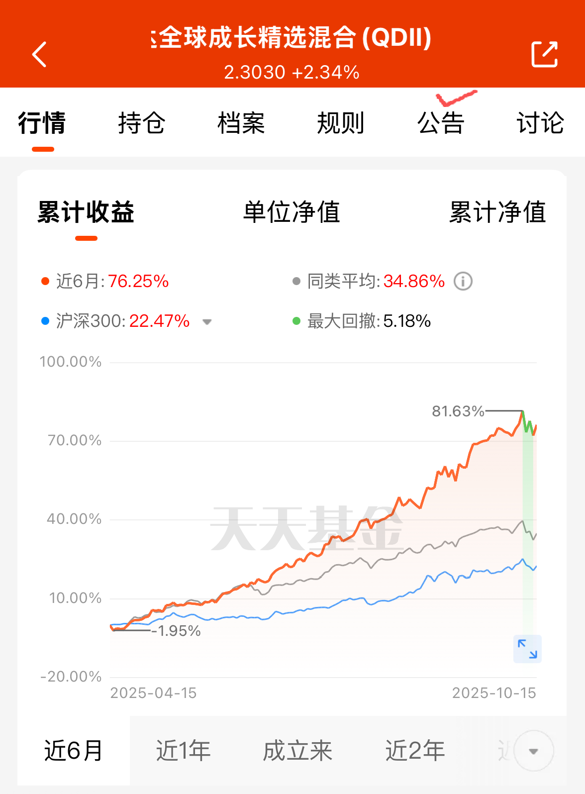 没法看!今天大科技又是一片狼嚎,在车上的大家得吐一口大血了,我个人看法,只要不是阴跌就有救,大跌之后大涨么,老剧情了,强力洗,力度总是大的。$易方达全球成长精选混合(QDII)人民币C(OTCFUND|012922)$这个全球科技基,从走势上就能看出来比较抗震的了,10月以来的回撤控制跌不错,近六月76.26%,跑赢同类平均的34.86%,经理的实力非常在线了。