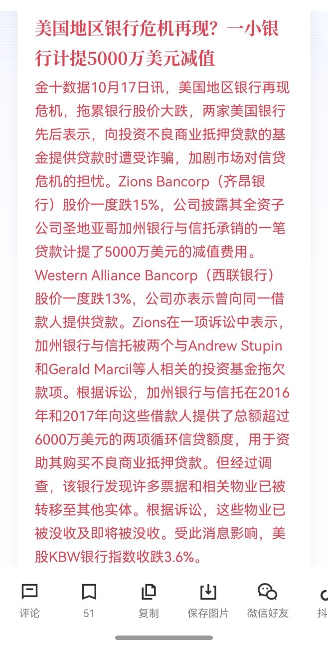 可能某两个股市,因【美国地区银行危机再现?一小银行计提5000万美元减值】、与将