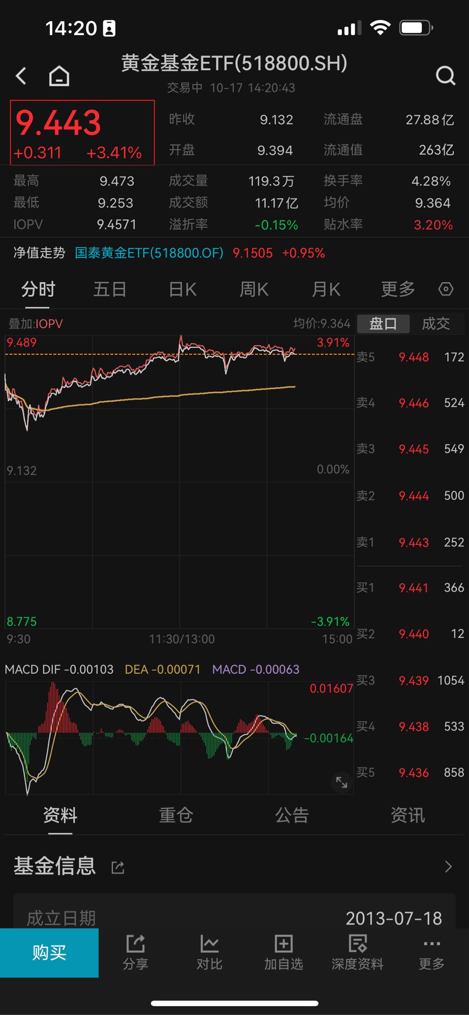 哎,最近黄金涨得有多过分呢?$国泰黄金ETF$ 这样说吧,涨得我都眼红了[泪奔][泪奔][泪奔]