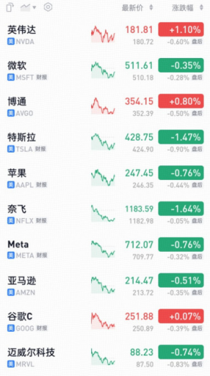 【重仓涨跌】昨日华宝纳斯达克精选前十大重仓股3涨7跌,美元兑人民币中间价↓0.04%。(重仓股涨跌情况仅供参考,不代表当前基金业绩表现,还请以每日更新的实际基金净值为准)