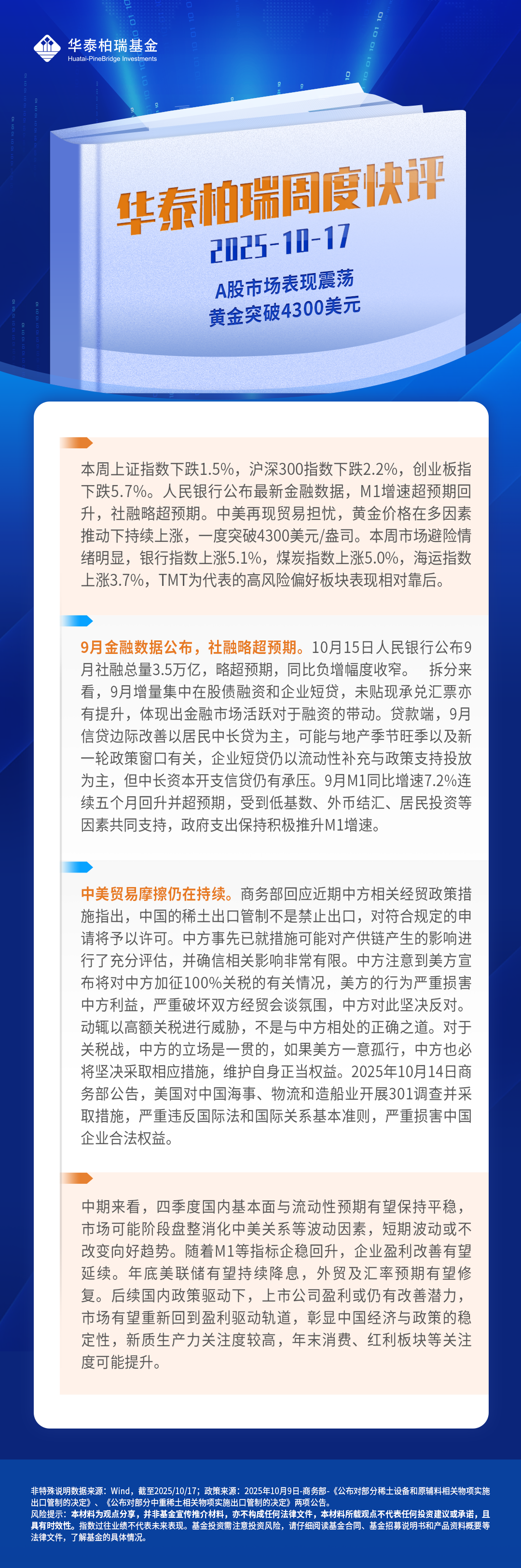 【周度快评】A股市场表现震荡,黄金突破4300美元