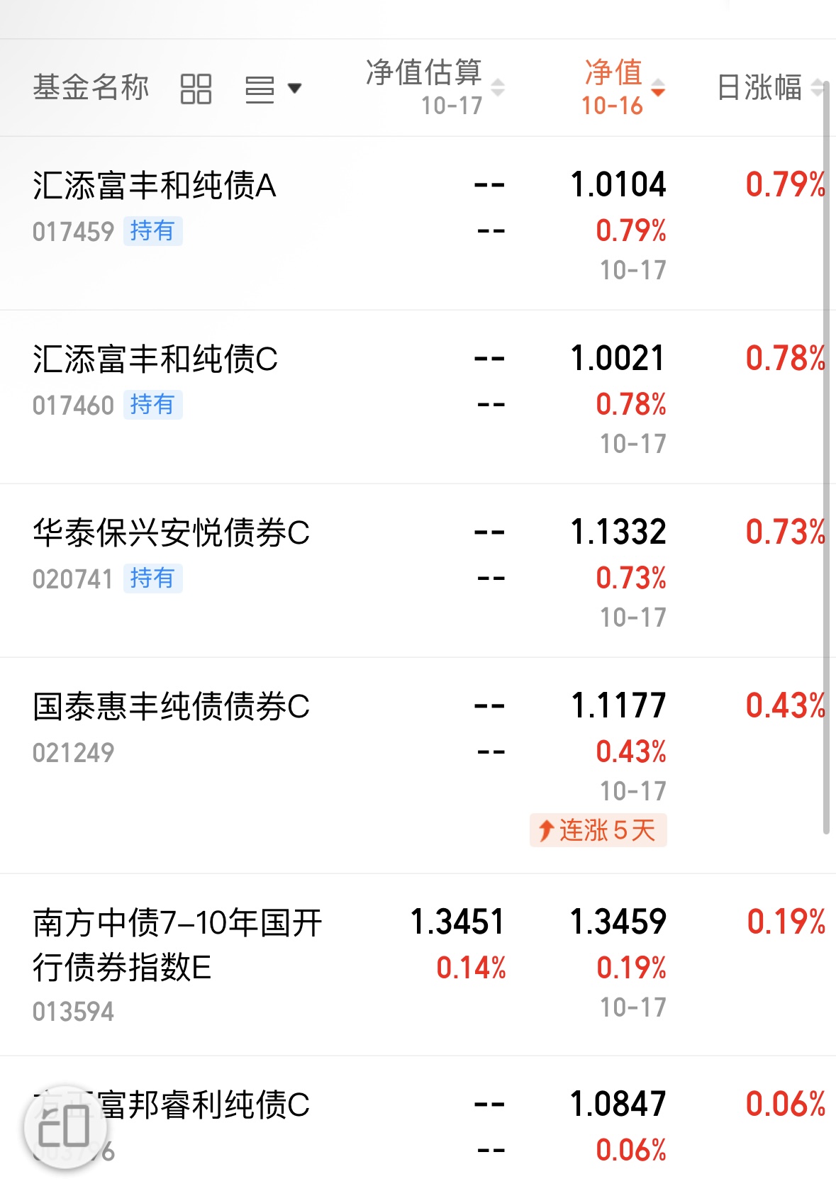债友们大口吃肉了!股市大跌,债市崛起,利率债今天晴天盘面,$汇添富丰和纯债C(OTCFUND|017460)$收78个大蛋,丰和的策略还是坚持30年超长债的,一直都没变,现在既然有回暖迹象,逢低定投做波段的一把好手了。