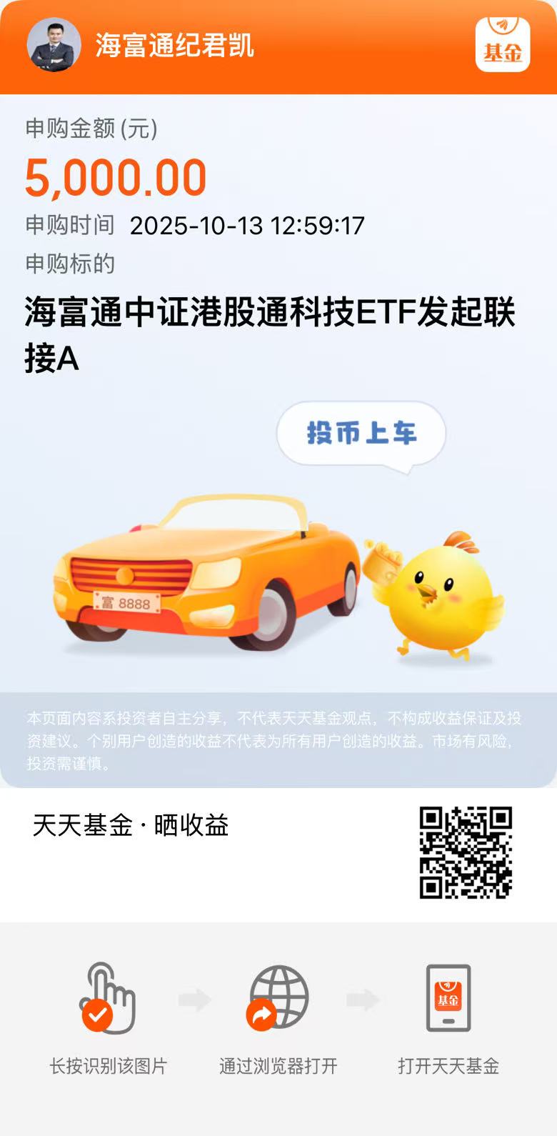 $海富通中证港股通科技ETF发起联接A(OTCFUND|021464)$