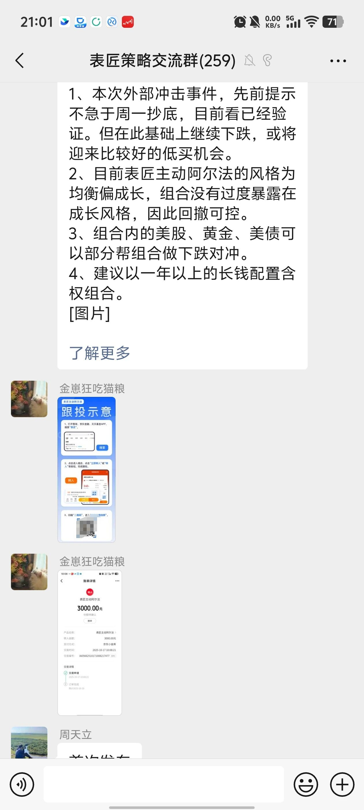 今天也注意到群里面有提示,今天可以去做跟投,是本次调整以来我们的首次跟投。我们并不知道下周还会不会跌,但按照之前说的总体15%的跌幅预期来看,把资金分成几份分批来投,会稳妥一些。