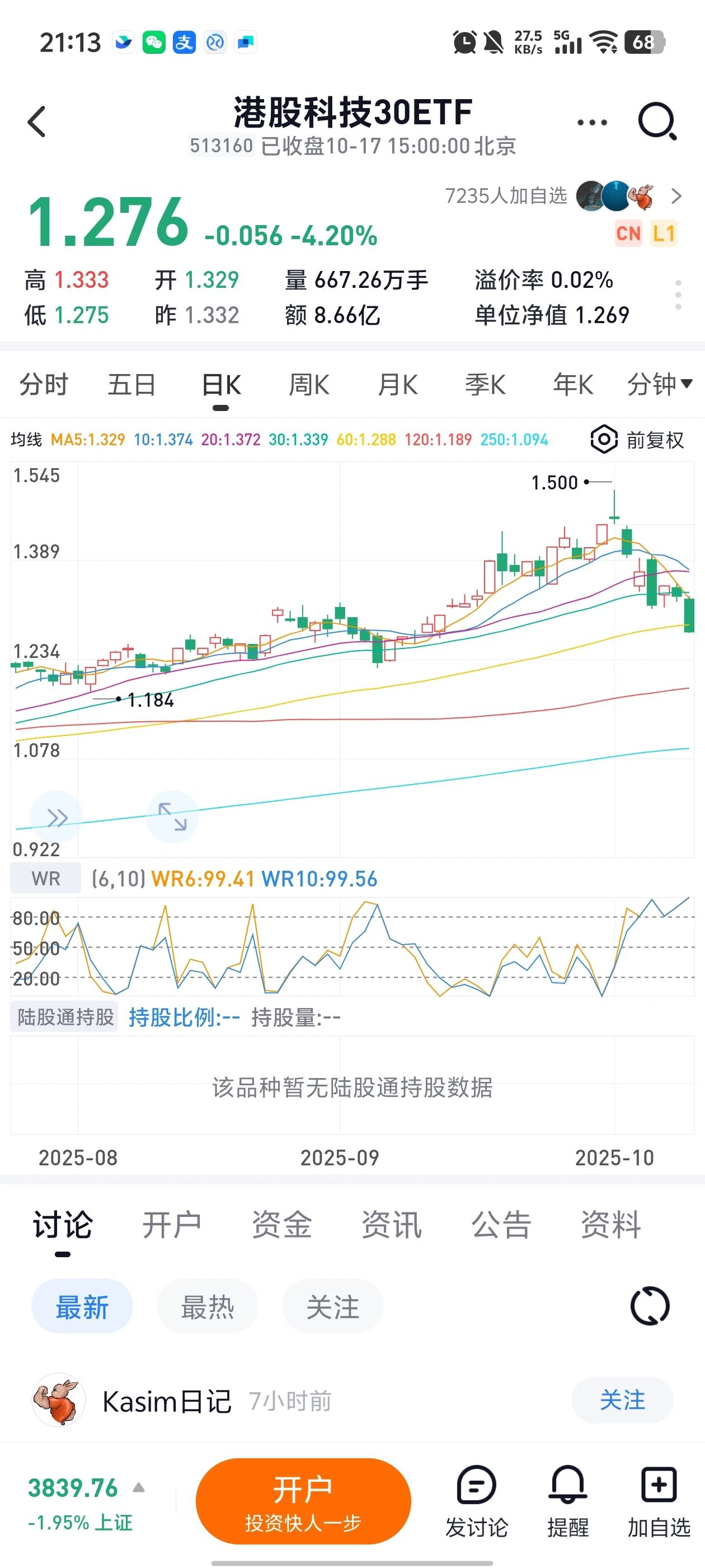 至少在本周,我们避开了周一和到周四的总体的下跌在周五抄了一个小底。下周我还会密切观察市场,在下周择机跟投第二笔。